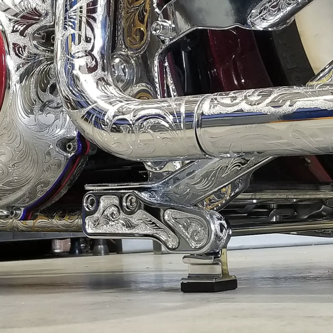 M8The sleeker-looking AF Kustoms Gen 2 Electric Softail Center Stand is now available! Those with custom Softail Models who wish to display all sides of their bike can do so with the New AFK Gen 2 ELECTRIC POWERED Softail Center Stand. The easiest way to view every detail of your custom-built bike is to stand vertically.