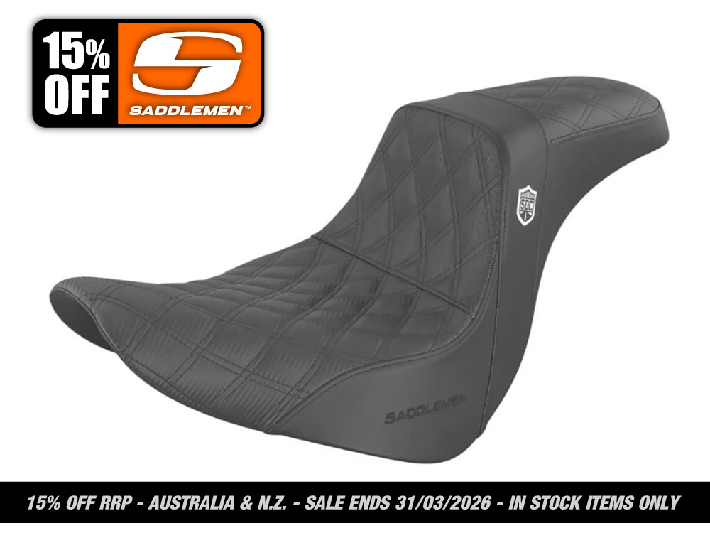 SADDLEMEN SEATS Pro Series San Diego Customs Performance Gripper Dual Seat. Fits Sport Glide & Low Rider 2018up, Low Rider S 2020up & Low Rider ST 2022up