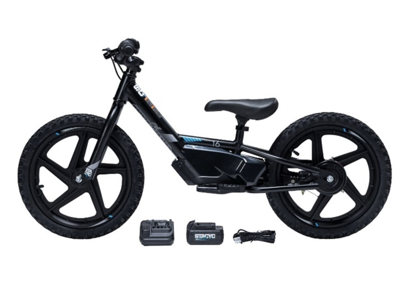 The STACYC 16eDRIVE is the perfect choice for little rippers with some experience on a balance bike and are a little taller and/or more familiar with riding STACYC Stability Cycles and need a larger platform. Your child should have an inseam of 18” or more to adequately touch the ground with a slight bend in the knees for optimum sizing. Your child can learn to push, balance, and coast in the non-powered mode. Graduate them to the powered mode (the holy grail of fun) as they show proficient use and understanding of the brake and the ability to coast and brake while standing. Start them with a speed similar to what they can push the non-powered version at, and they learn the use of the twist throttle, and a long coast turn into a constant use of throttle and giggles. As they continue to develop skills, the medium speed of the STACYC 16eDRIVE allows for an exceptional amount of fun outdoors, getting thousands of hours of hand-eye coordination, balance, and outdoor exercise.